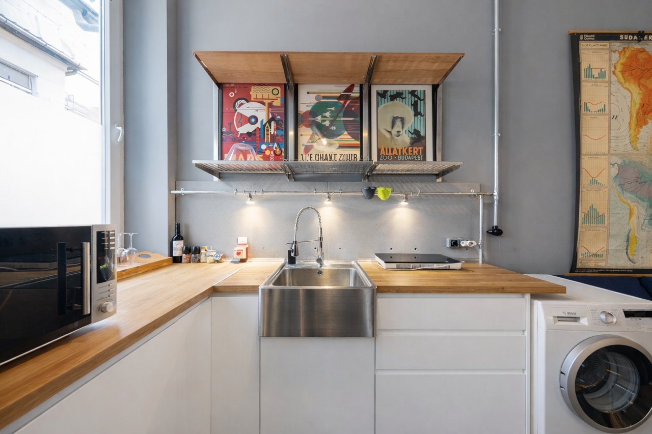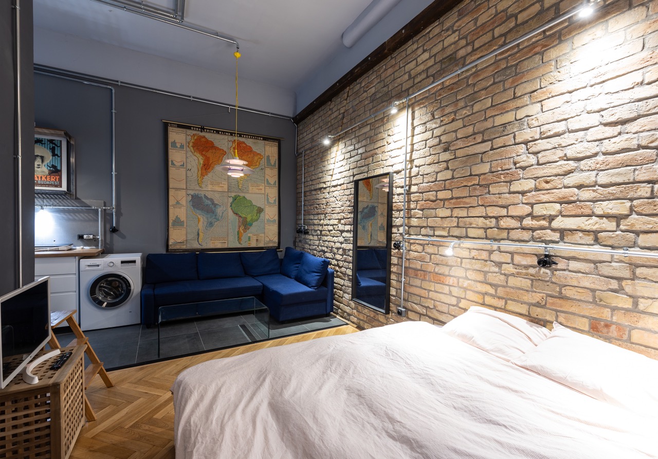 Perfect for digital nomads or newcomers to Budapest while they’re looking for their long term place. Magnificent, central, quiet and fully equipped studio flat (30sq/m) with everything to make you feel comfortable. There is a washing machine inside the studio and superb air conditioning. The building has an elevator for ease and located in a no party area of District 7. It is located half-way between Blaha Lujza Square and Keleti Railway Station with supermarkets, metro/subway, trams and buses all accessible in a few minutes.