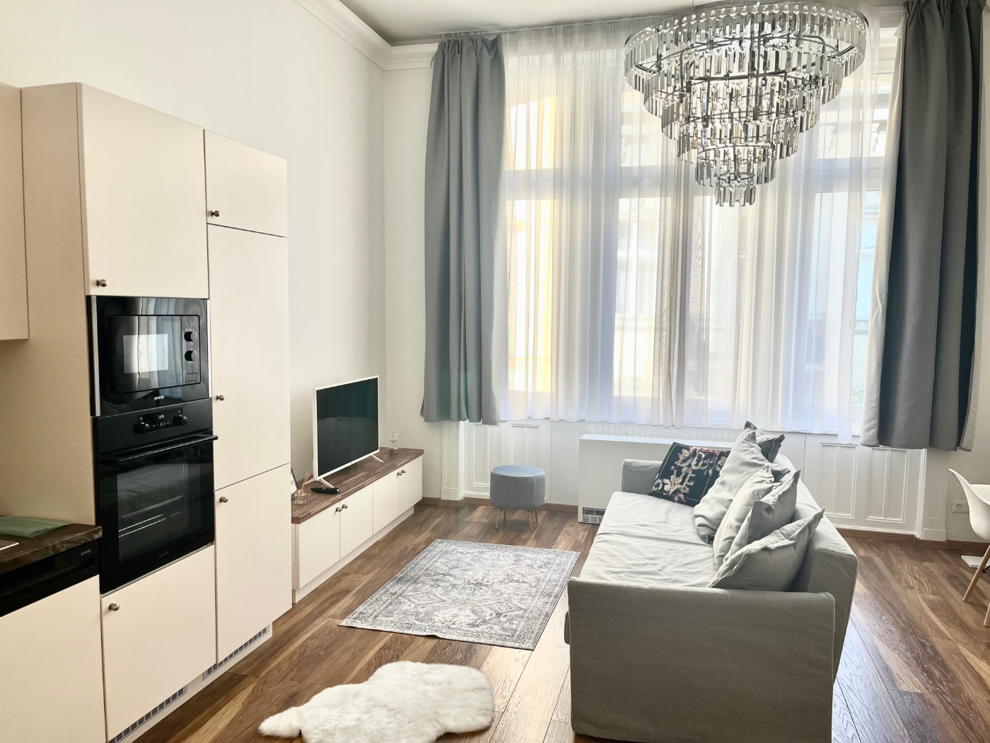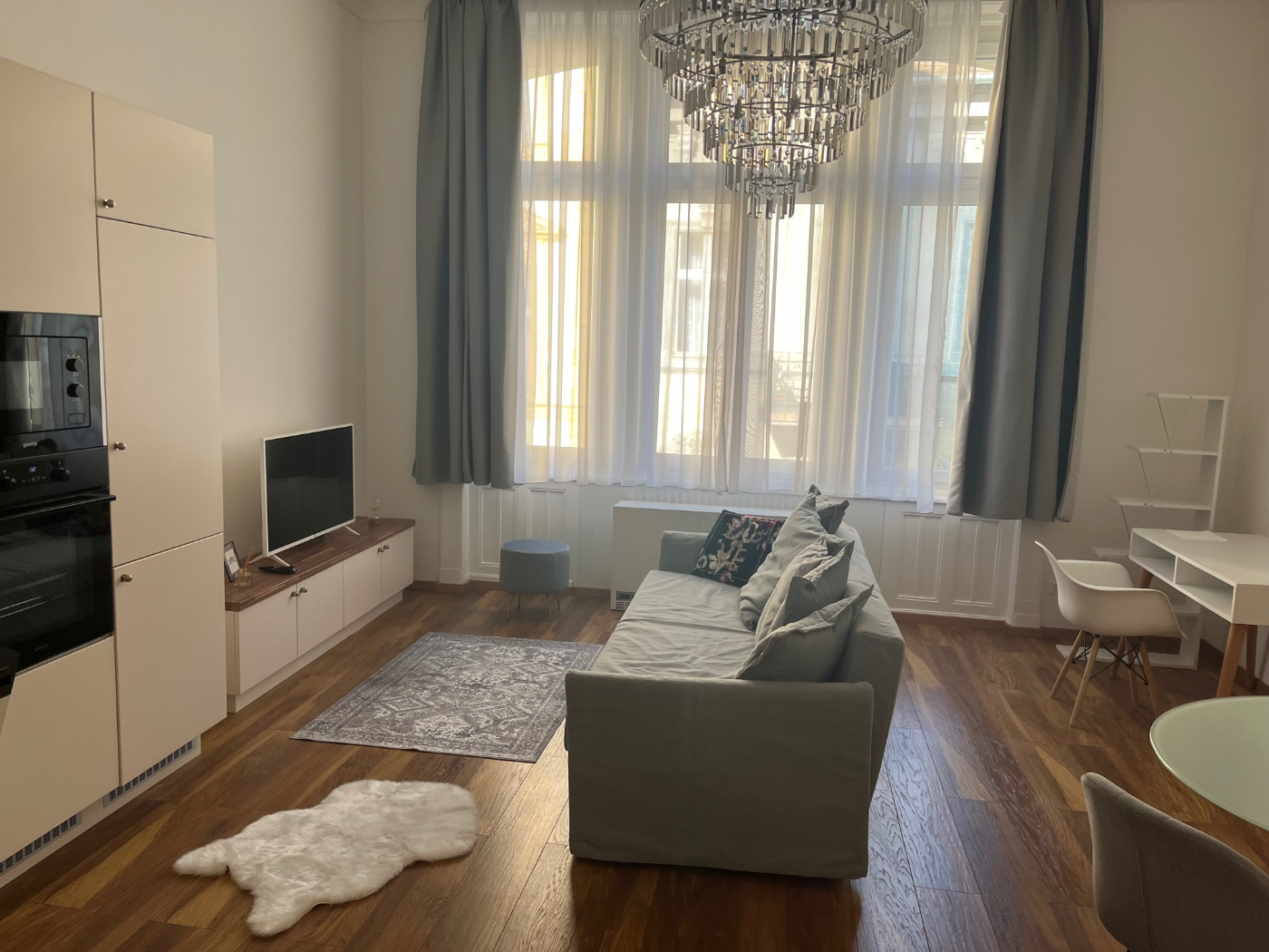 Nicely decorated 3rd floor (with elevator) 50sqm apartment at Bank street, in 5th district. St.Stephen’s Basilica and Danube River and Deak ter are in 5-6 minutes walk. Apartment views to Bank street, it has storage, washing machine equipped kitchen, fast wifi.