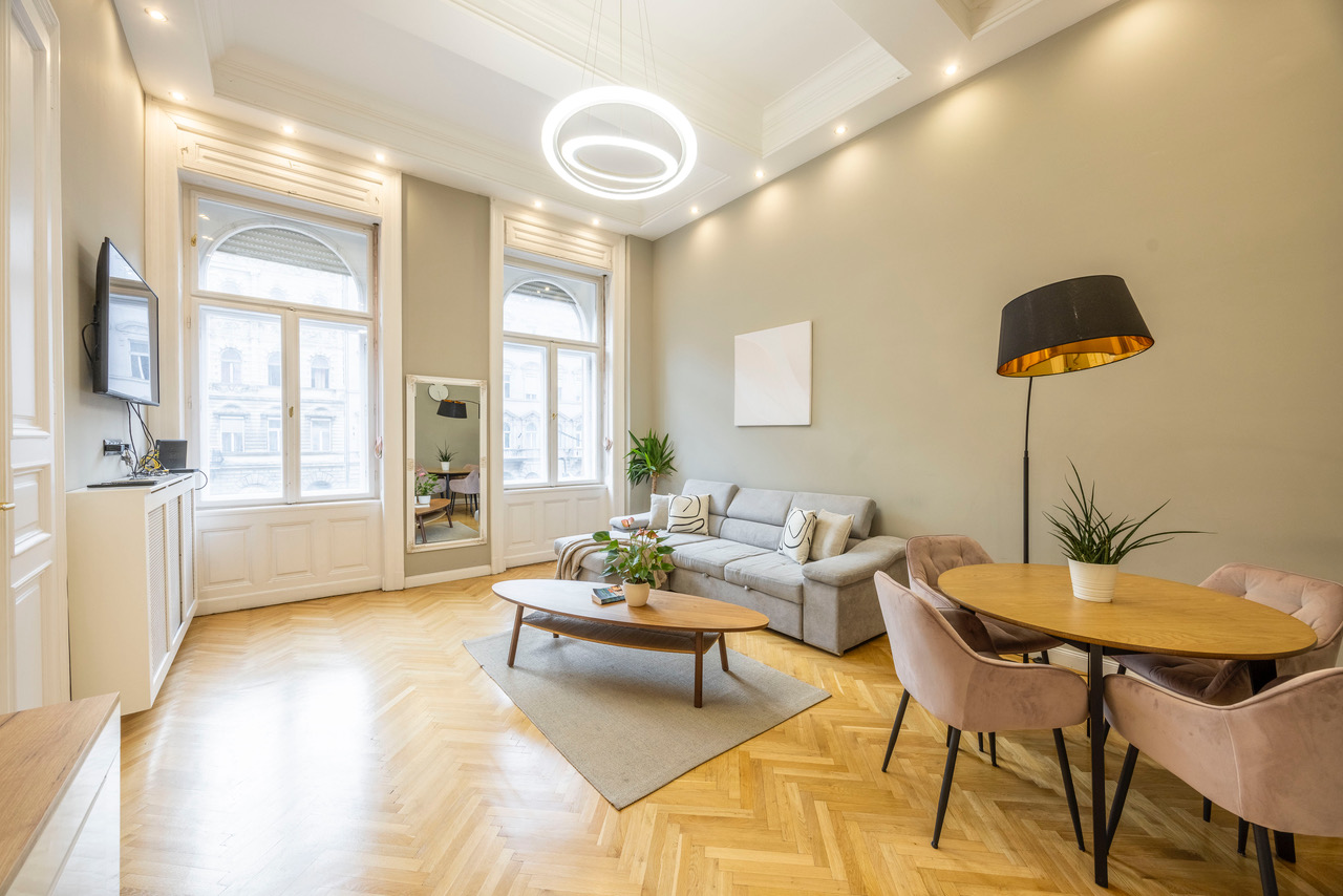 Very comfortable, bright 75 sqm apartment for rent for min. 6 months. Excellent public transportation ensures 24/7 access to the house. Nearby are Corvin Plaza, Semmelweis University, Museum of Applied Arts, restaurants, pubs, etc.