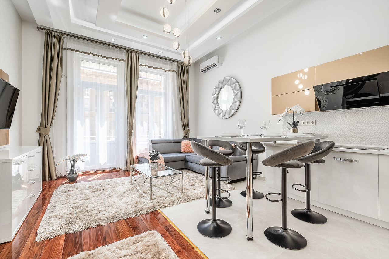 In the heart of Budapest, on Király Street few steps to Deak Ferenc ter, a tastefully renovated, fully furnished two-bedrooms apartment with a balcony and underground parking! Numerous restaurants, cafés, and shops can be found in the immediate vicinity, offering the full experience of city living.