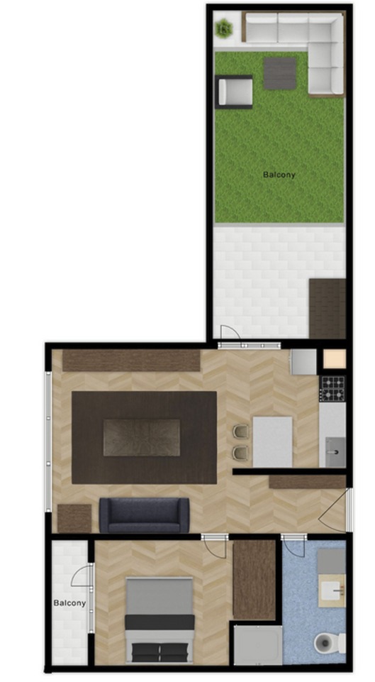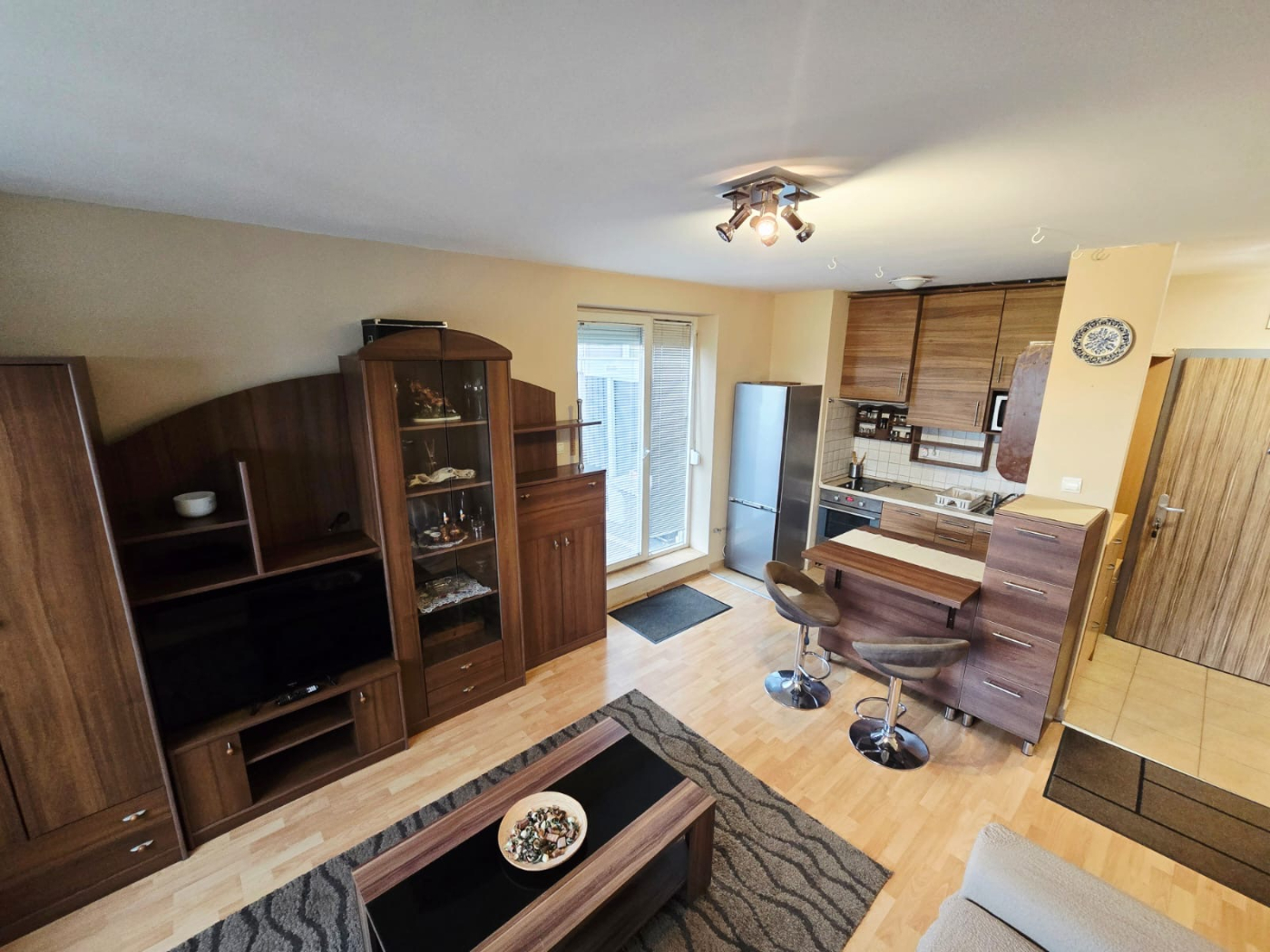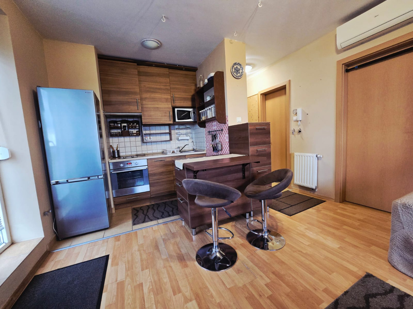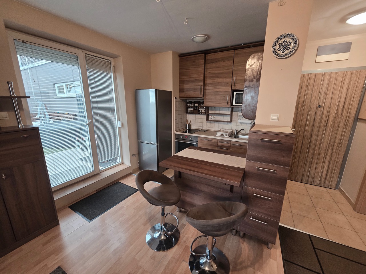 In a newly built residential complex, a bright and modern 42 m² penthouse apartment is available for mid-term rent. The flat features an open-plan living room with an American-style kitchen, a bedroom, a bathroom, plus a 22 m² rooftop terrace and a 3 m² balcony. Fully furnished and equipped with air conditioning and modern appliances.