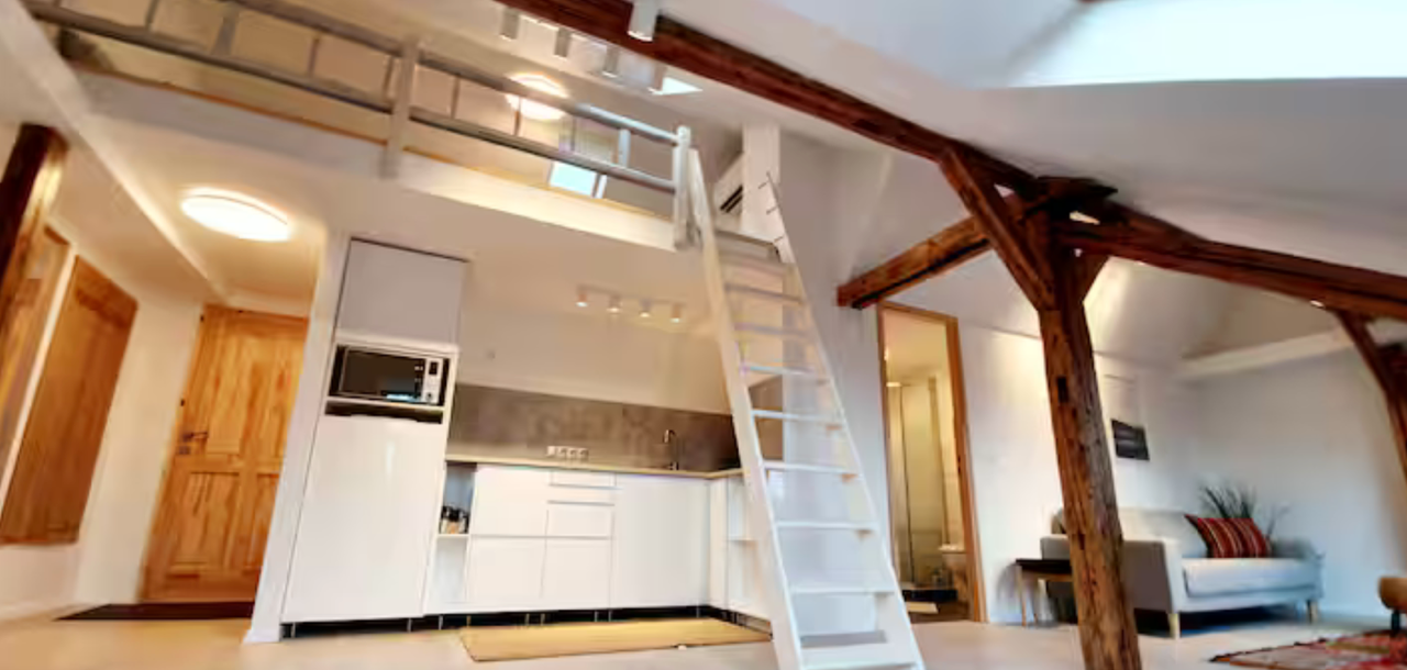 36sqm loft-stlye studio at 11th district, Ormay Norbert street, M4 metro is about 6-8 minutes away, Etele shopping mall is only 10-12 minutes away. Apartment is located on top floor, it has AC, fast wifi, washing machine and equipped kitchen. Tranquil, residential area.