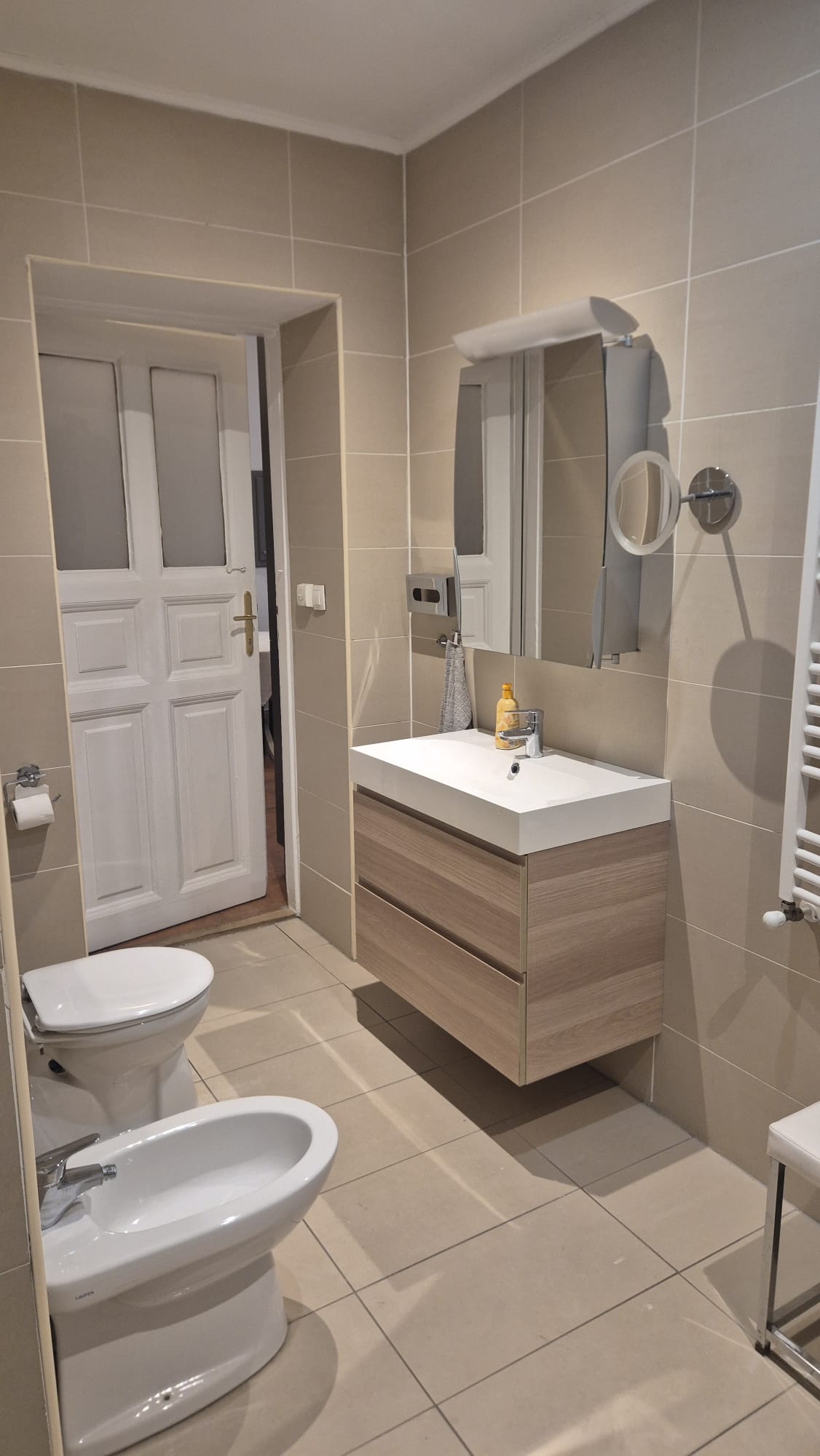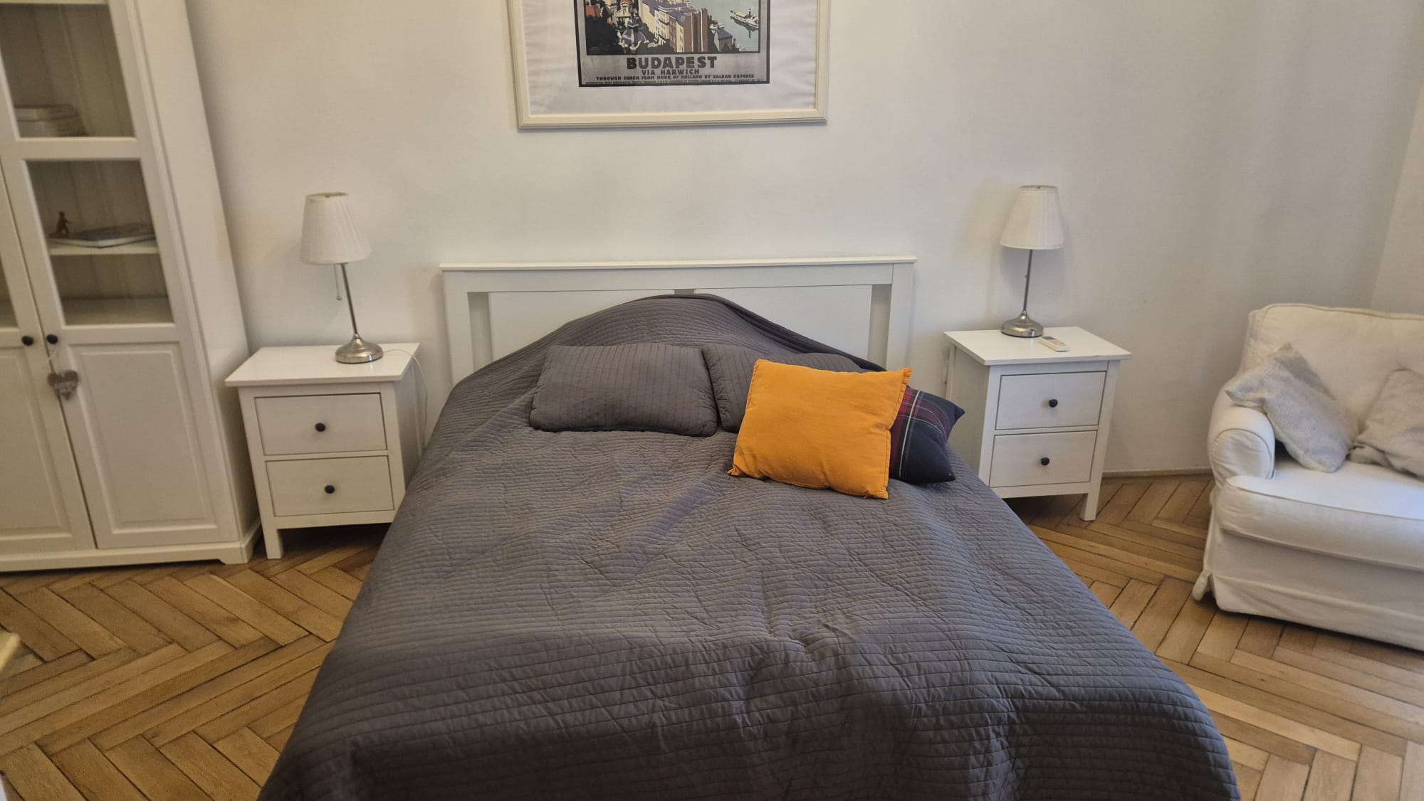Nice, spacious 74 sqm apartment in the city center very close to Deák Ferenc tér. 1st floor, wide stairs but no elevator. All three metro lines stop at Deák Square (1, 2, 3). Gozsdu Udvar is on the parallel street, opposite the Budapest Ferris wheel, and you can walk to the Danube bank in a few minutes. You can easily get home 24/7 because many buses stop here. The 100E bus also stops here. Tram: 47, 48, 49.