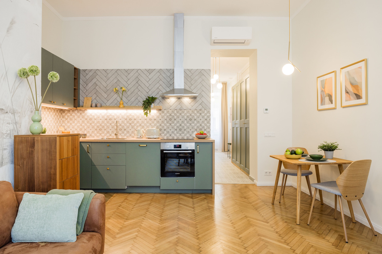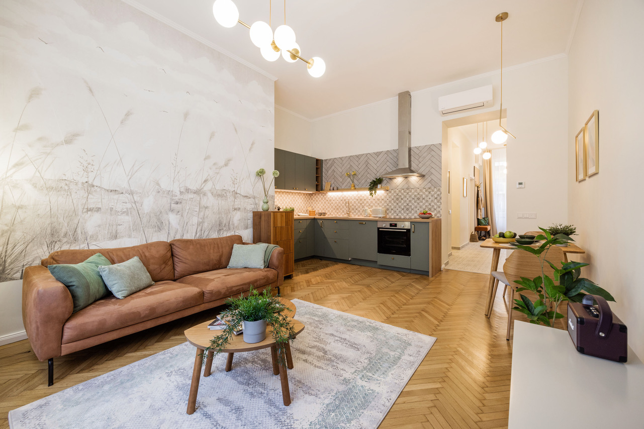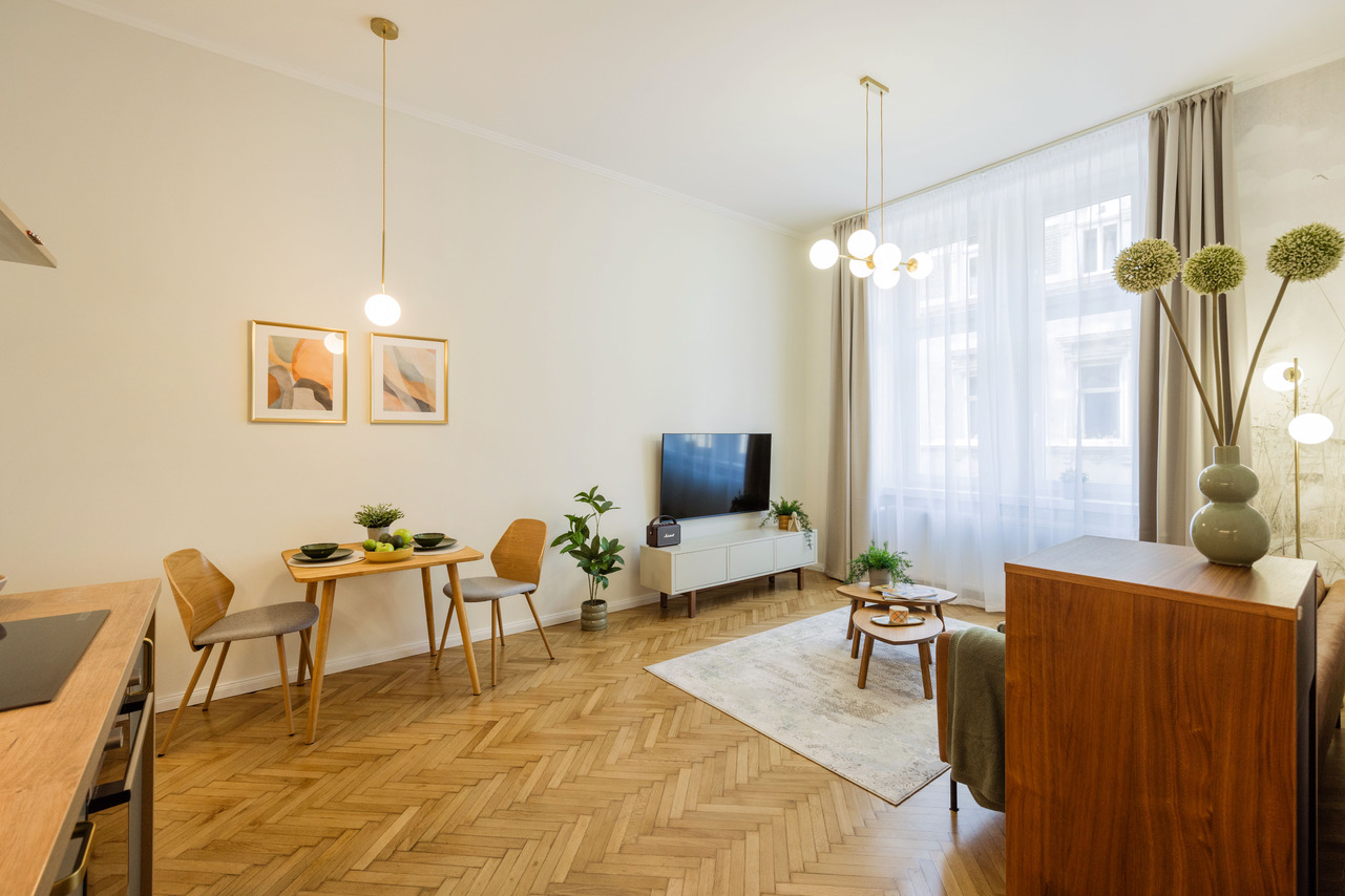 Cozy, 50sqm 2nd floor (no lift) apartment at Szövetség street, 7th district with fully equipped kitchen, lots of storage, AC, fast wifi, washing machine/dryer and dishwasher.
