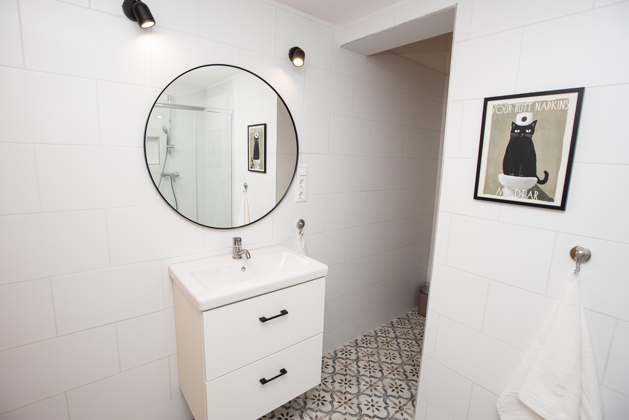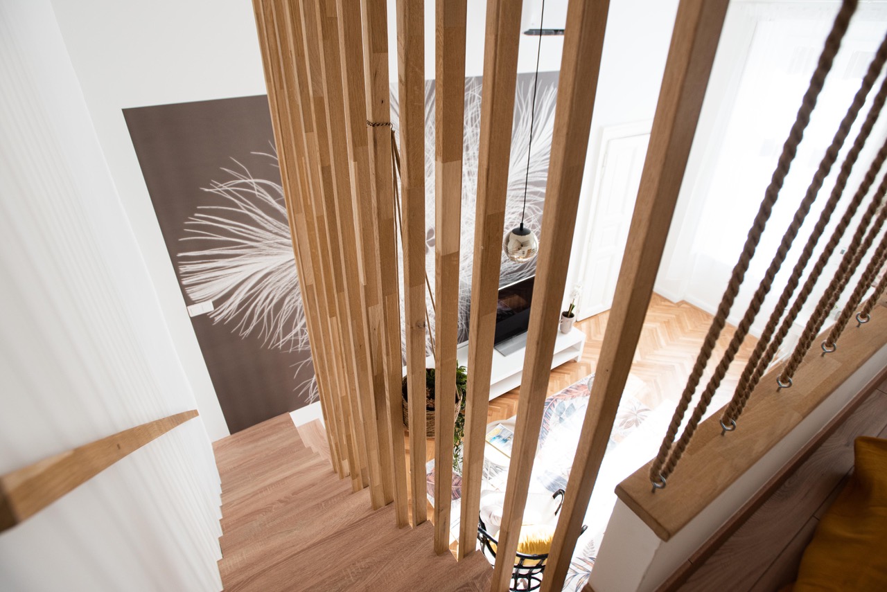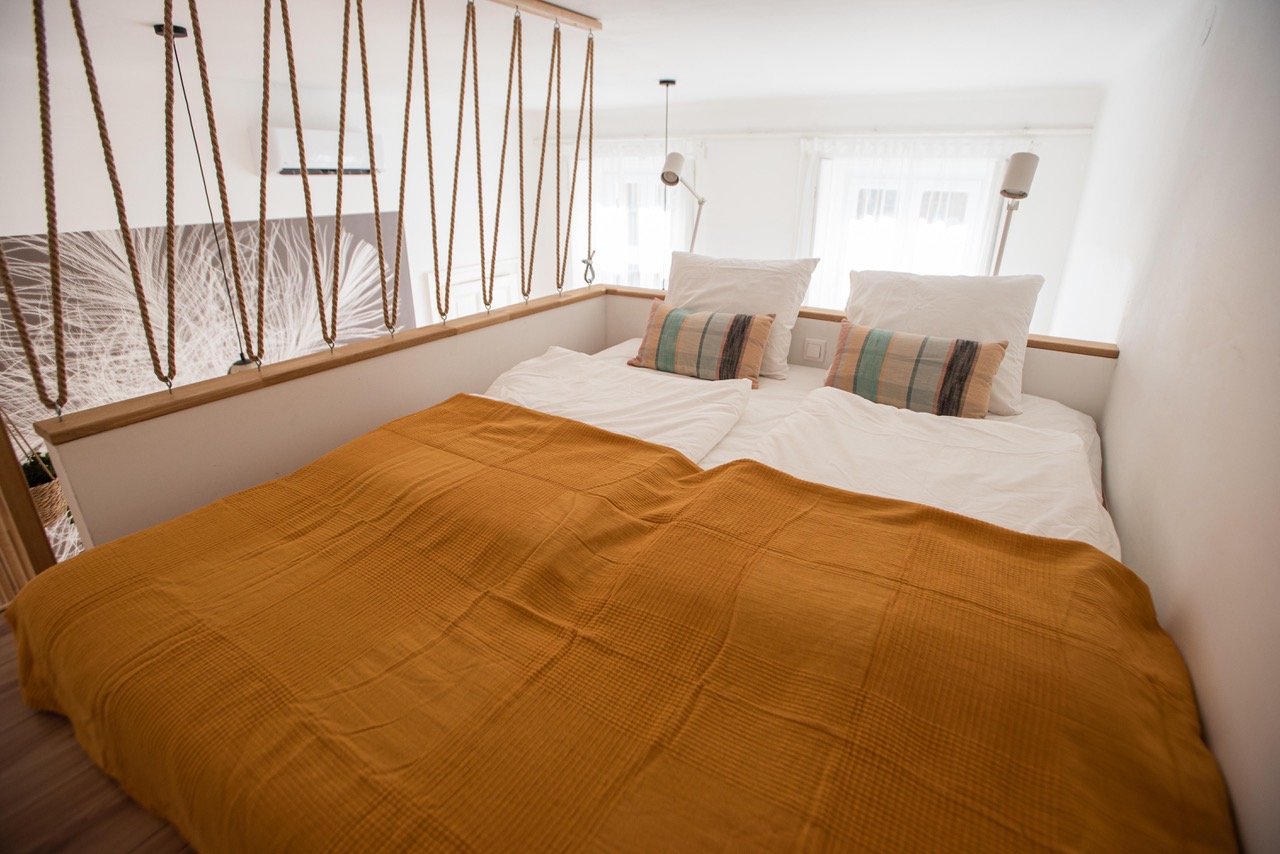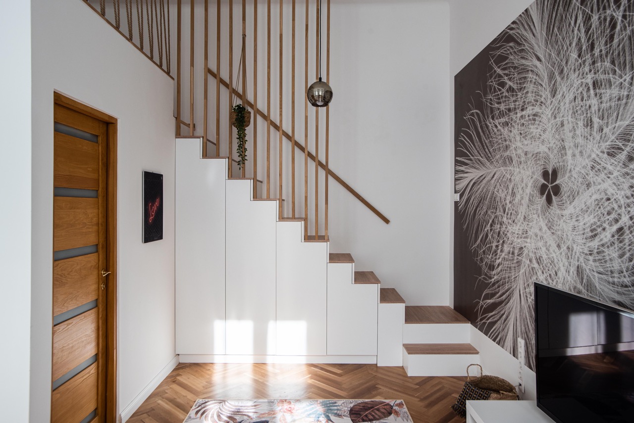 We enter the dining room-kitchen, from which the living room opens. From the living room we go up the stairs to the gallery bedroom. There is a wardrobe under the stairs. The bathroom with shower opens from the living room, from here the toilet with window.