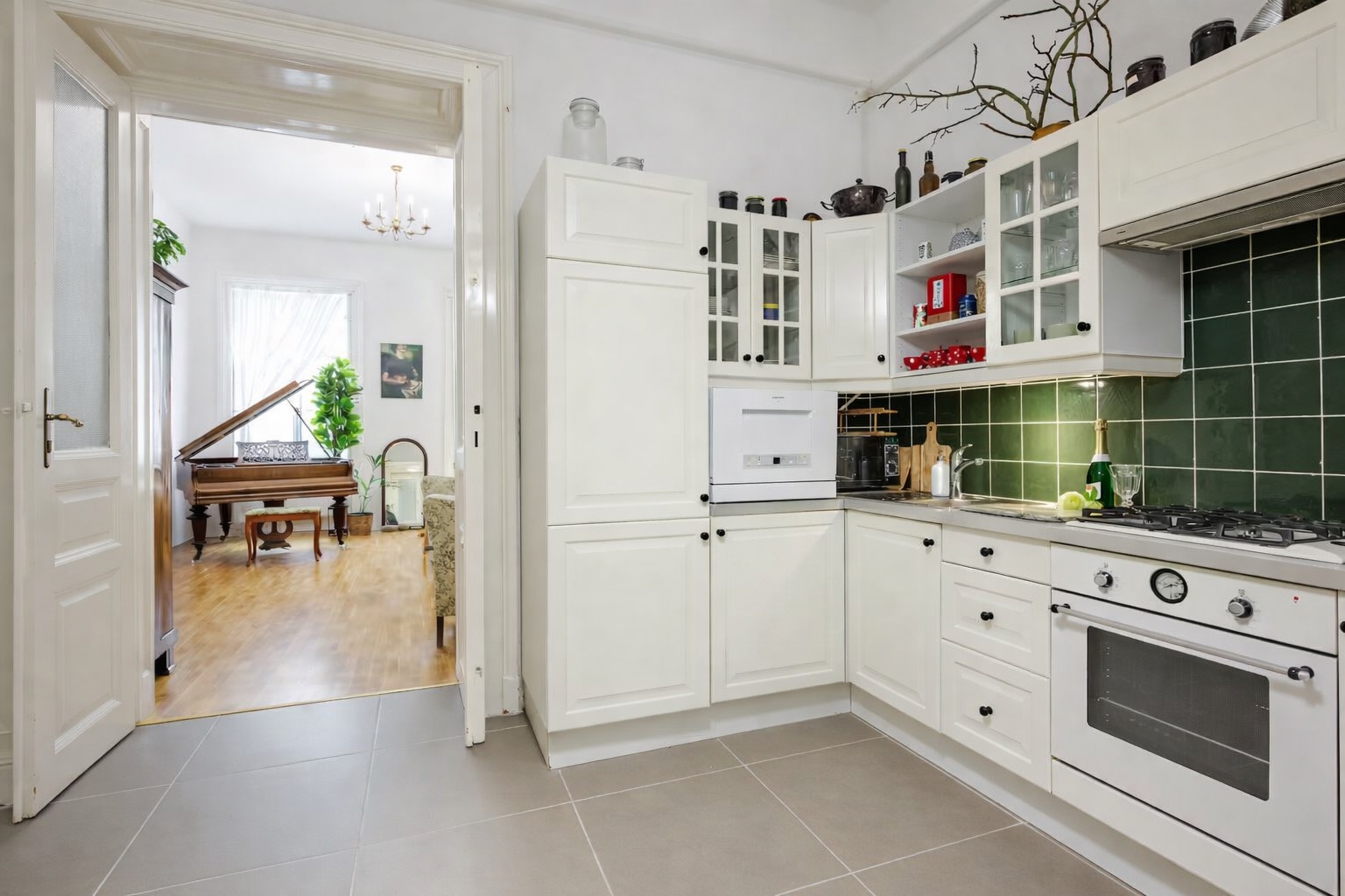 The location is one of its biggest strengths. Just a few steps off the spectacular Andrassy World Heritage Site and the Millennial Railway station, it’s neighbouring the Liszt Museum and is next to the Academy of Fine Arts and the National Puppet Theatre. Hunyadi park is just across the street, the local Market Hall and farmers market only 100 meters away. Surrounded by cafes, groceries, restaurants, galleries, boutique shops, 24/7 public transport, all within minutes walk so day-to-day life is comfortable and easy, while the apartment itself remains quiet and peaceful.
