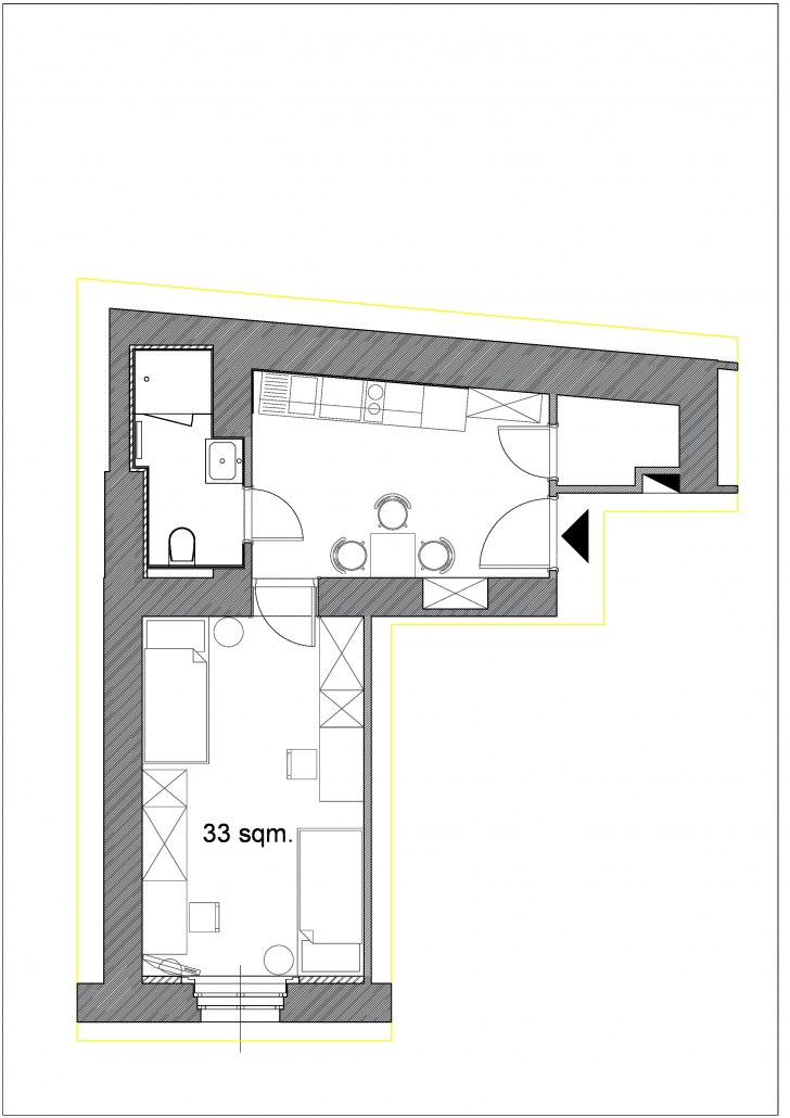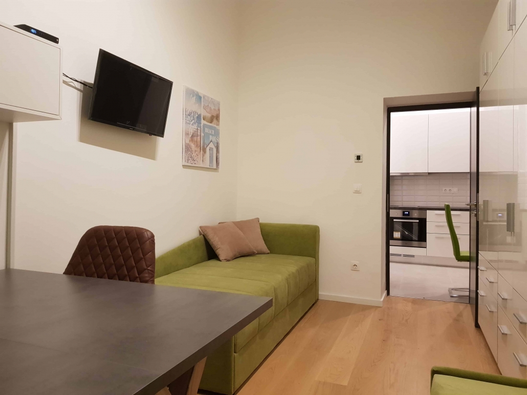 Apartment is located in renovated classical building, it has equipped kitchen, modern shower.