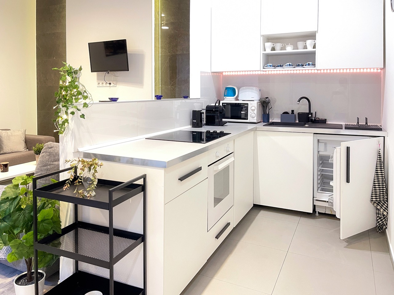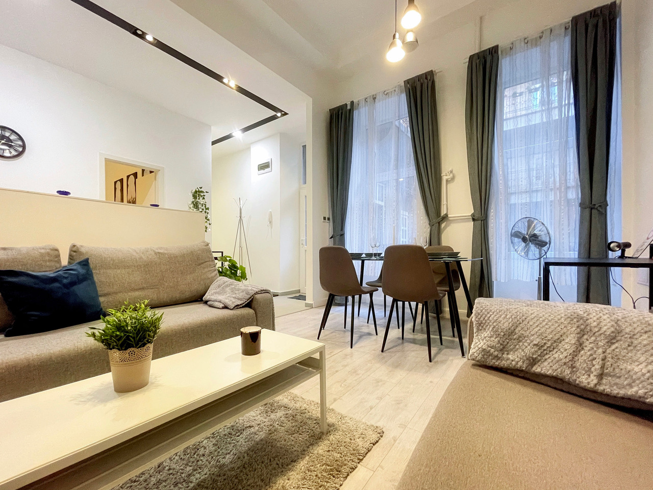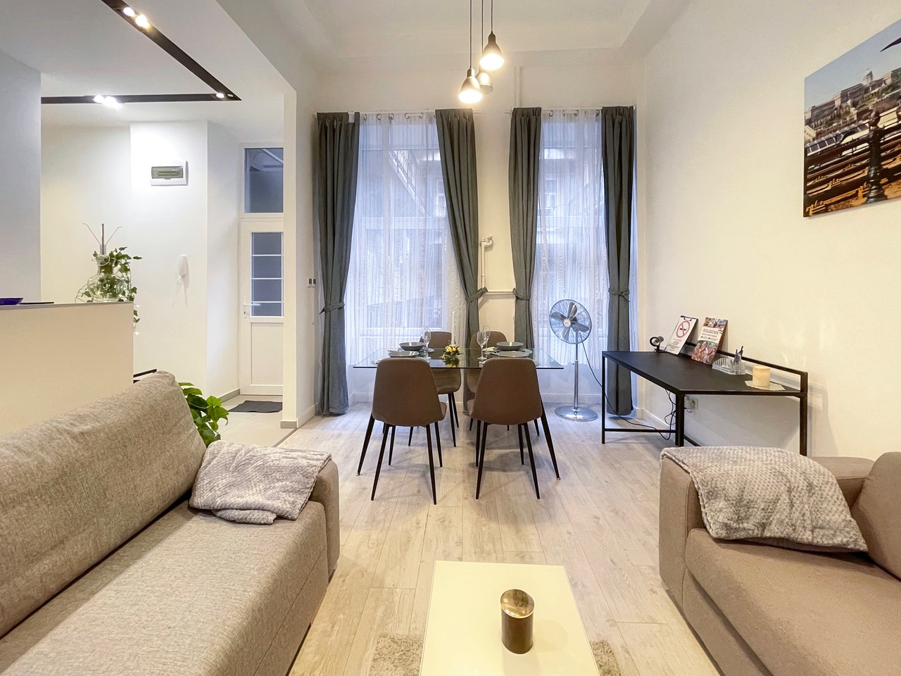 We offer modern minimal style 1st floor apartment on 50 sqm at district 7th at Almássy square. Apartment views to courtyard, sunny and quiet place with one bedroom (double bed), living-room with office desk, kitchen, bathroom and wardrobes. Nearby there are many shops, supermarkets and restaurants and gym.