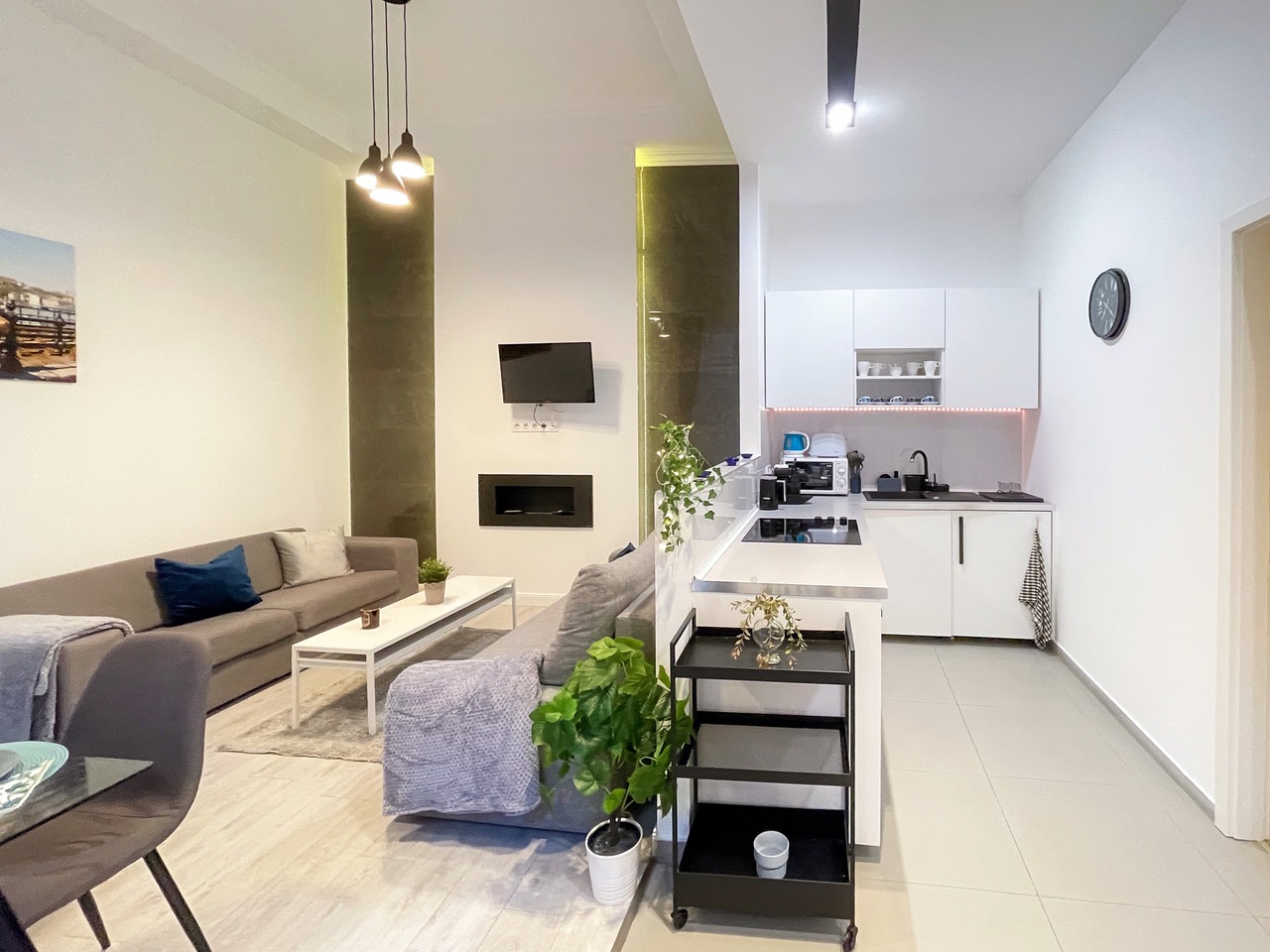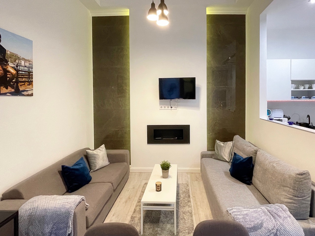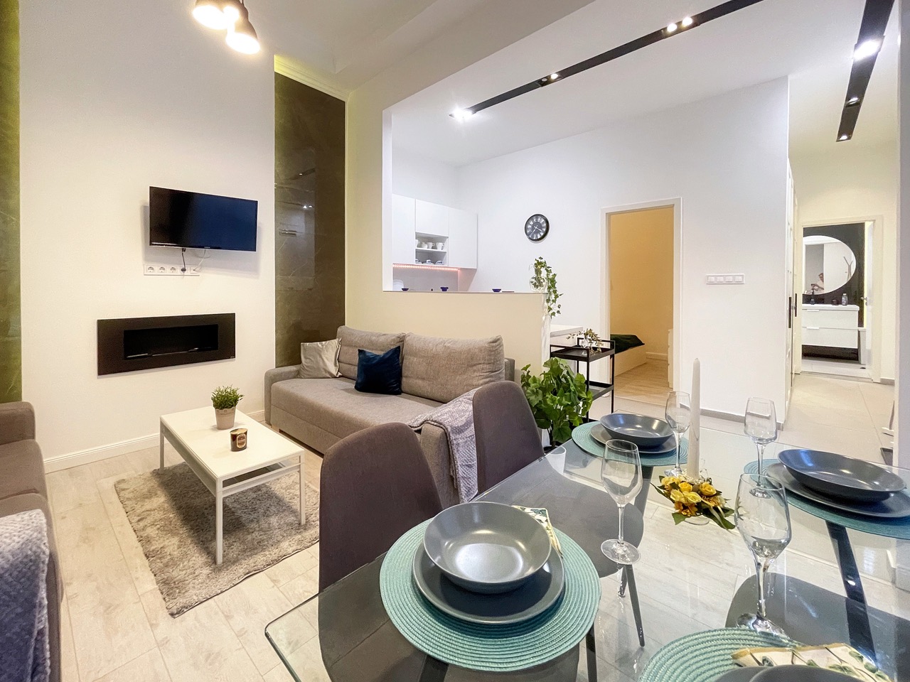 We offer modern minimal style 1st floor apartment on 50 sqm at district 7th at Almássy square. Apartment views to courtyard, sunny and quiet place with one bedroom (double bed), living-room with office desk, kitchen, bathroom and wardrobes. Nearby there are many shops, supermarkets and restaurants and gym.