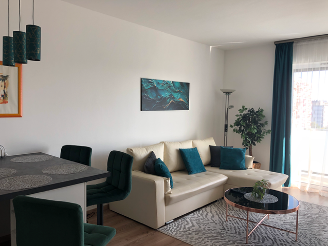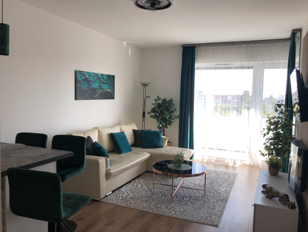 We offer this stunning one-bedroom apartment at 13th district, Béke square. Apartment is located on 6th floor in modern condominium with nice view of Béke square church and park. Apartment also has 9m2 terrace, underground parking, alary system, airco and high-quality furnishing.