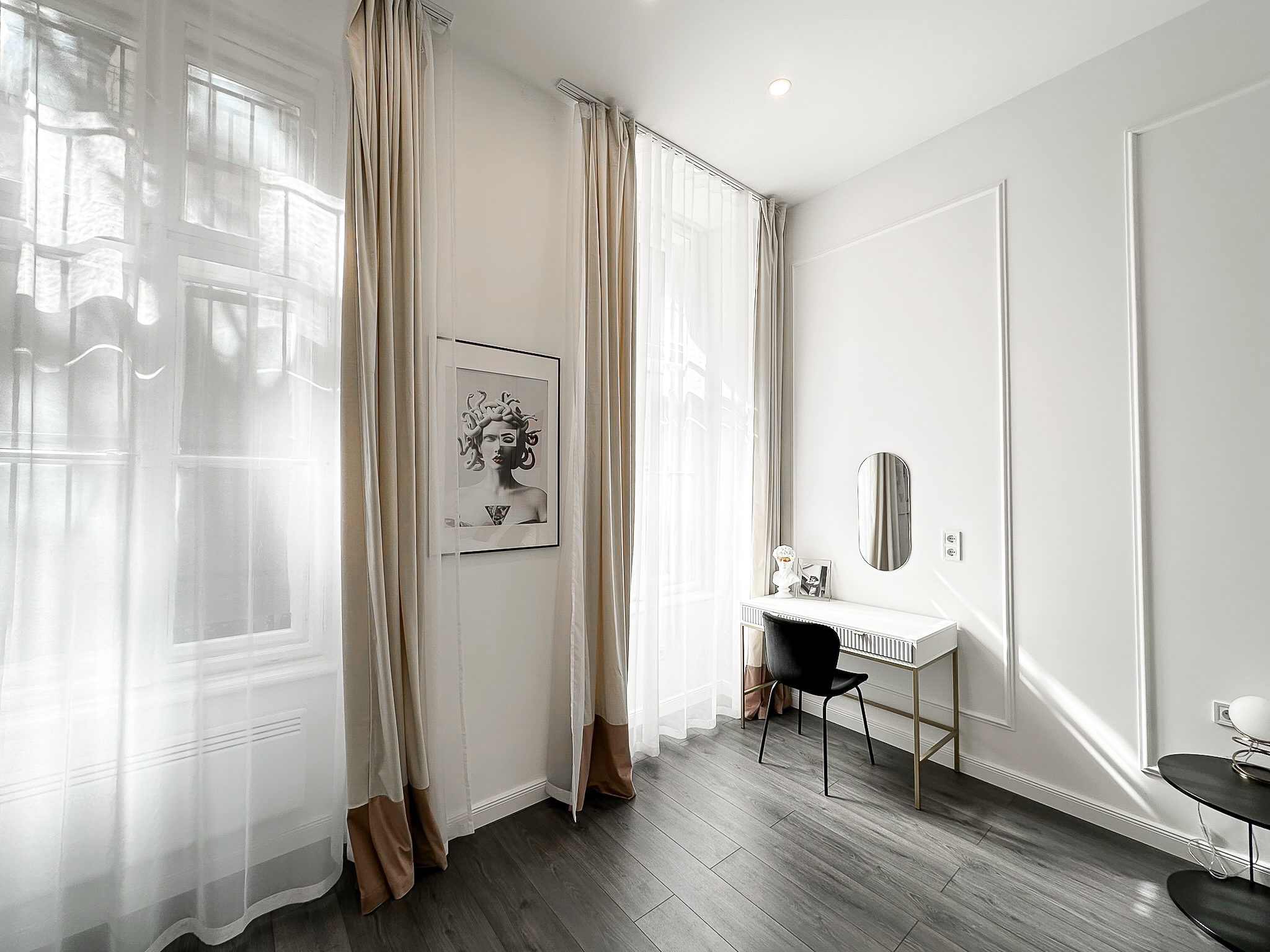 This luxury apartment is available for rent in the most central location of Budapest for a minimum of 6 months. Despite its central location, it is quiet because the windows overlook the inner courtyard. The area has everything you could need in the medium term. Restaurants, pubs, mall, gym, theater, cinema, etc.